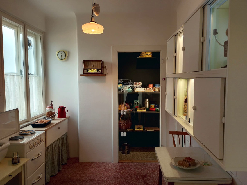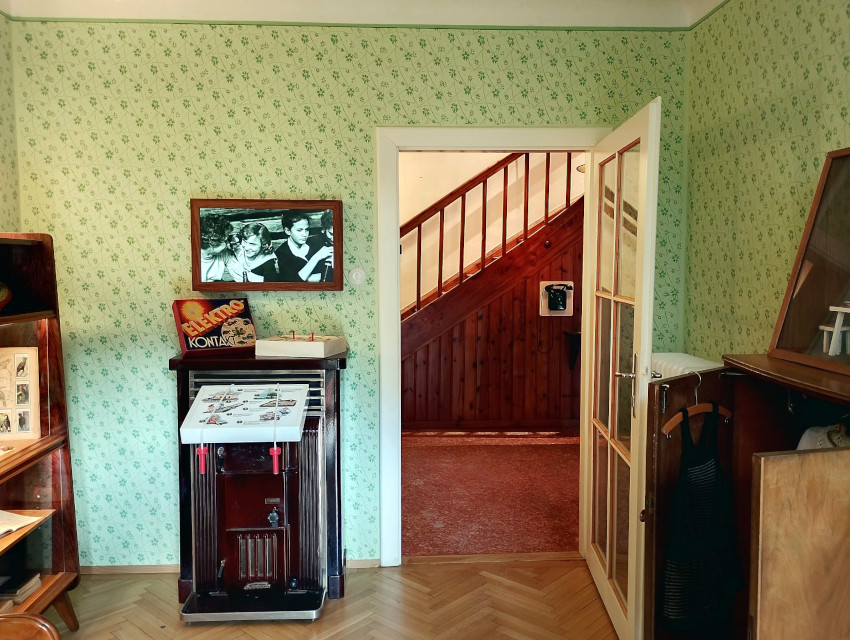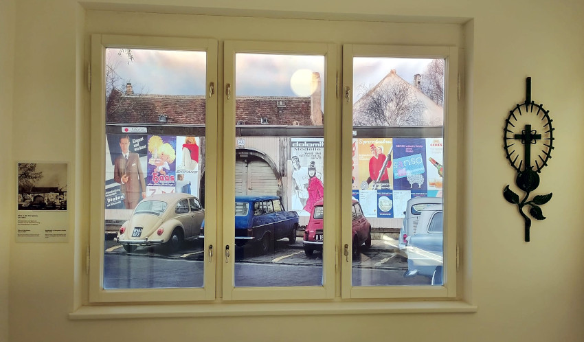 Am Ende des Rundgangs passiert dann etwas Unerwartetes. Man steht vor einem großen Fenster – und blickt hinaus in die Pfarrgasse der 1950er-Jahre. Alte Autos mit schwarzen Kennzeichen parken vor der Villa, scheinbar festgefroren in der Zeit. In diesem Moment denkt man unweigerlich: Jetzt fehlt eigentlich nur noch Marty McFly, der ums Eck biegt. Ein kurzer Schmunzler – und schon ist man wieder mittendrin.